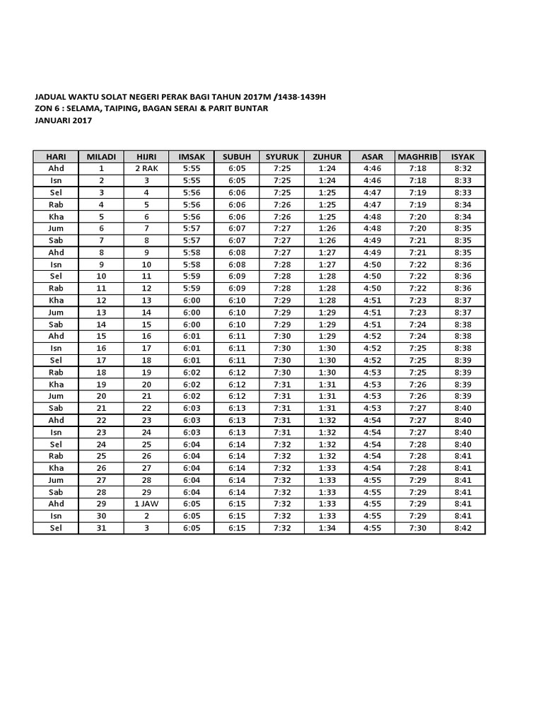 Waktu Solat Perak 2022 1443h 1444h Jakim Tahunan